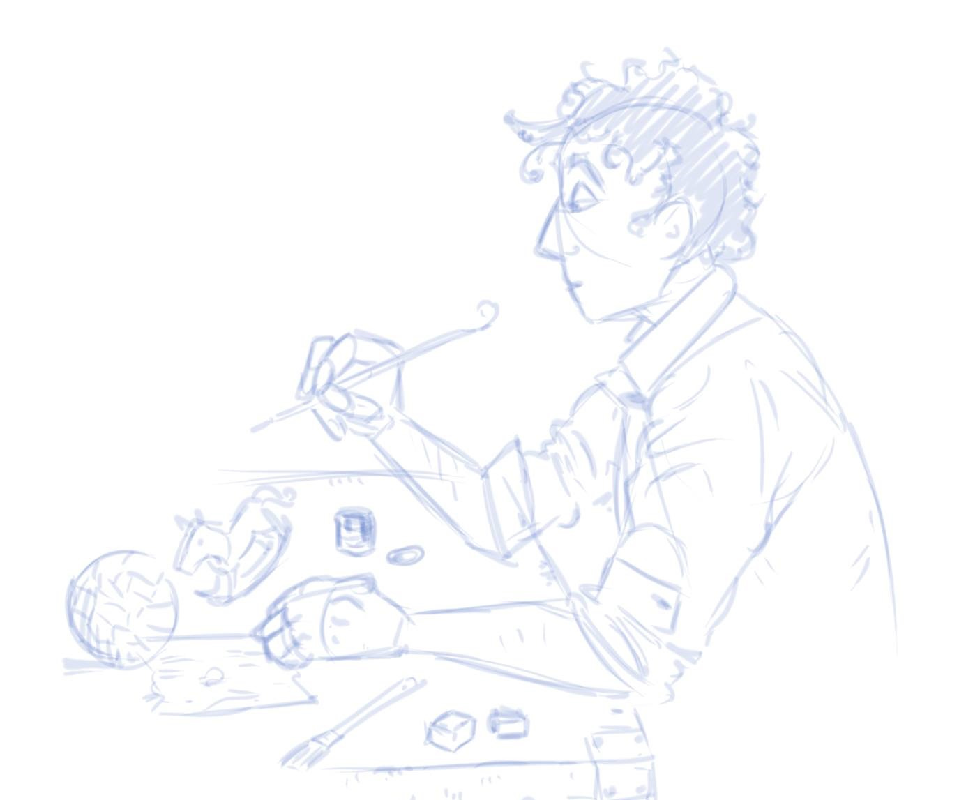 The Toymaker’s Son was not sure how it had happened, but he found himself sat on a wooden stool behind a workstation littered with tools and implements. Paints and brushes, knives and scalpels, clamps, cogs, wire, leather, screws and buttons were everywhere; some scattered liberally on tables, others stacked nearby in drawers and shelves. A warm light filtered through the dust motes from an opaque window behind him, setting the edges of every surface aglow. Distantly, the Toymaker's Son could hear chattering voices and quiet music.
